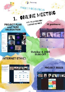 Prvi online susret učitelja iz partnerskih škola održan je u subotu 4. listopada 2025. godine. Nakon kratkog virtualnog upoznavanja, tijekom susreta dogovorena su pravila sudjelovanja u projektu, a predstavljen je i plan aktivnosti te su dogovorene odgovorne osobe za svaku aktivnost.