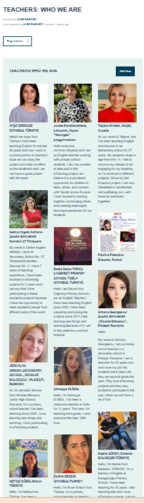 Na Twinspaceu učitelji postavljaju svoje fotografije i kratko se predstavljaju. Također učitelji predstavljaju škole i svoje razrede.