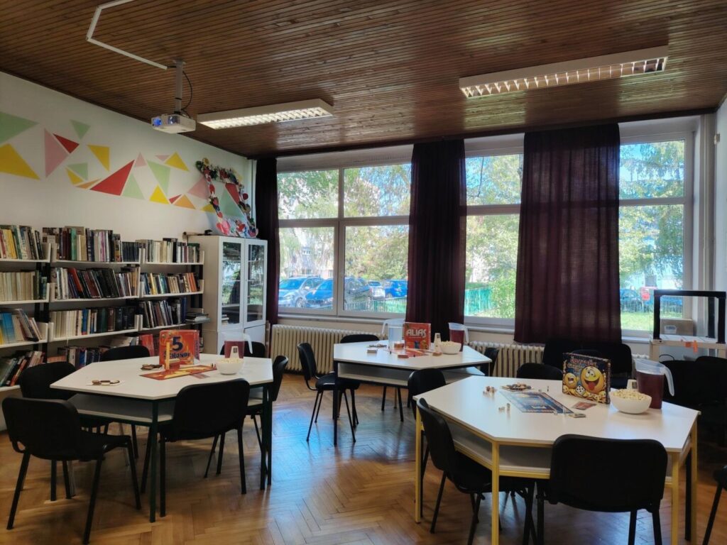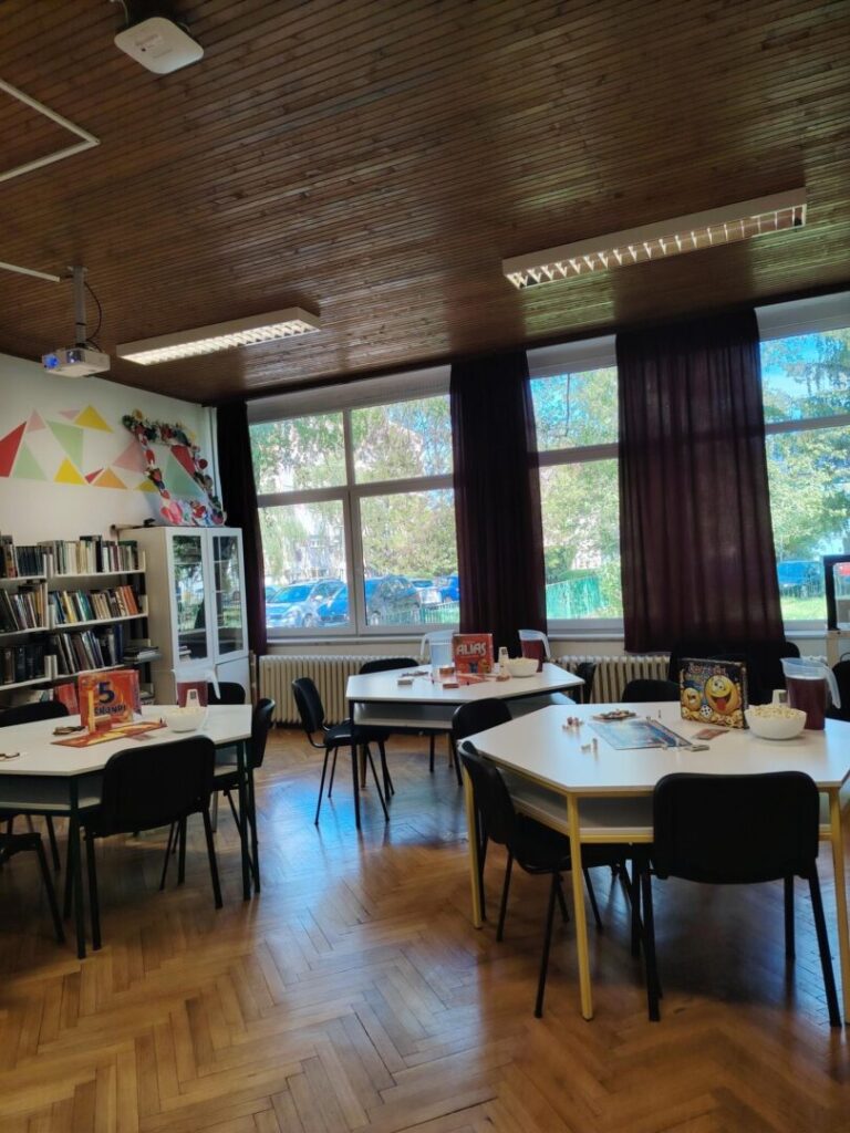U školskoj čitaonici bila je postavljena i izložba djela Tin Ujević i Miroslav Krleža, a učenici su bili pozvani i na druženje uz razne društvene igre, čime je prostor postao mjesto susreta, zabave i opuštenog učenja.